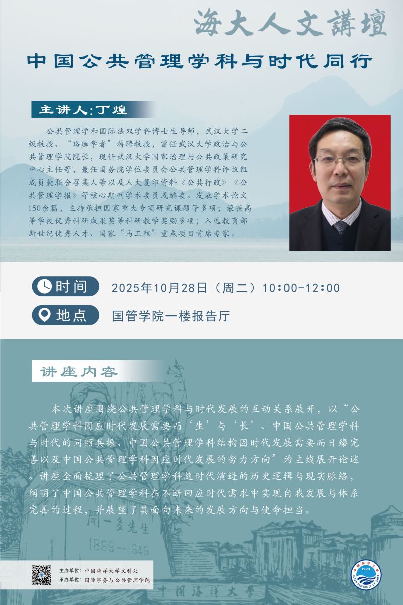 海大人文讲坛2025年第80讲—丁煌丨中国公共管理学科与时代同行