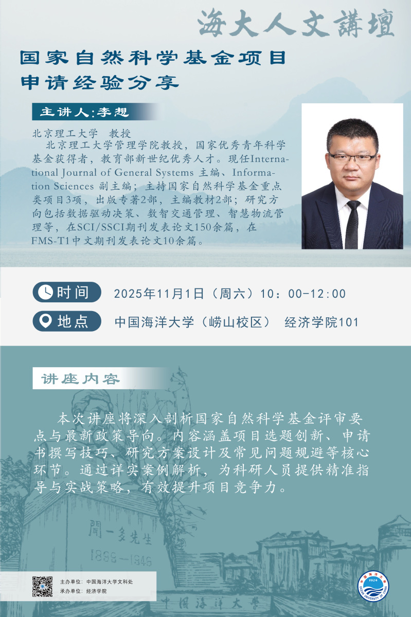 海大人文讲坛2025年第81讲—李想丨国家自然科学基金项目申请经验分享