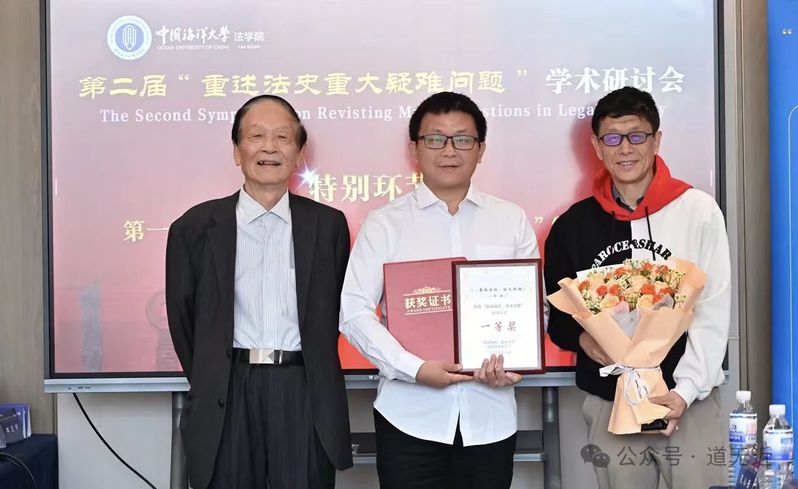 随后,会议进入首届“质疑成说,重述法史”征文颁奖仪式。中国社会科学院杨一凡研究员、山东大学侯欣一教授为获奖学者颁奖。一等奖获得者华东政法大学邬勖老师代表获奖学者发表了获奖感言。这次征文评奖是由“杨一凡重述法史学术工程资助计划”资助的、旨在推动法史创新的学术活动,着重奖励对中国法律史学重大和疑难问题研究做出突破性和反思性研究的成果,其中评选获优秀论文一等奖作品2篇,二等奖作品2篇,三等奖作品6篇。