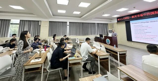 8月25日下午,香港科技大学商学院李家涛教授应邀做客“海大人文讲坛”,在管理学院为师生开展题为“新兴市场中的国际商务与管理研究:当前趋势与未来方向”学术讲座,管理学院卢宝周教授主持讲座。李家涛教授系统梳理当前新兴市场研究的五大前沿方向,分享其团队在企业创新战略、数字平台国际化等领域的最新研究成果。