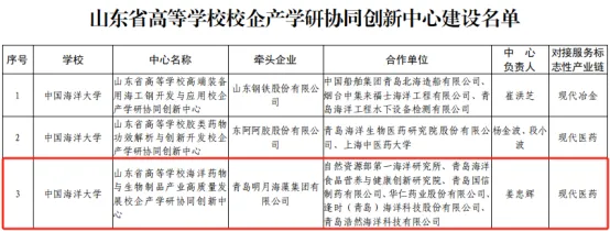 近日,山东省教育厅、工业和信息化厅公布了山东省高等学校校企产学研协同创新中心建设名单,由中国海洋大学创新创业研究中心主任、管理学院教授姜忠辉牵头申报的“山东省高等学校海洋药物与生物制品产业高质量发展校企产学研协同创新中心”(以下简称“中心”)成功获批建设,此次学校共有3个中心入选。