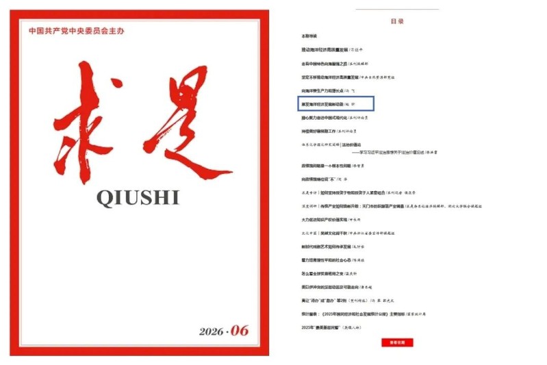 3月16日,中国海洋大学经济学院院长赵昕教授在《求是》2026年第6期发表题为《激发海洋经济发展新动能》的理论文章。