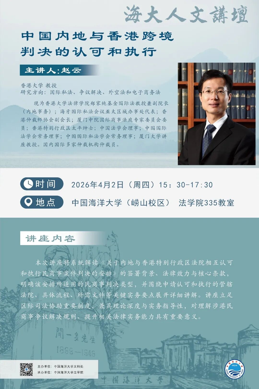 海大人文讲坛2026年第5讲—赵云 | 中国内地与香港跨境判决的认可和执行