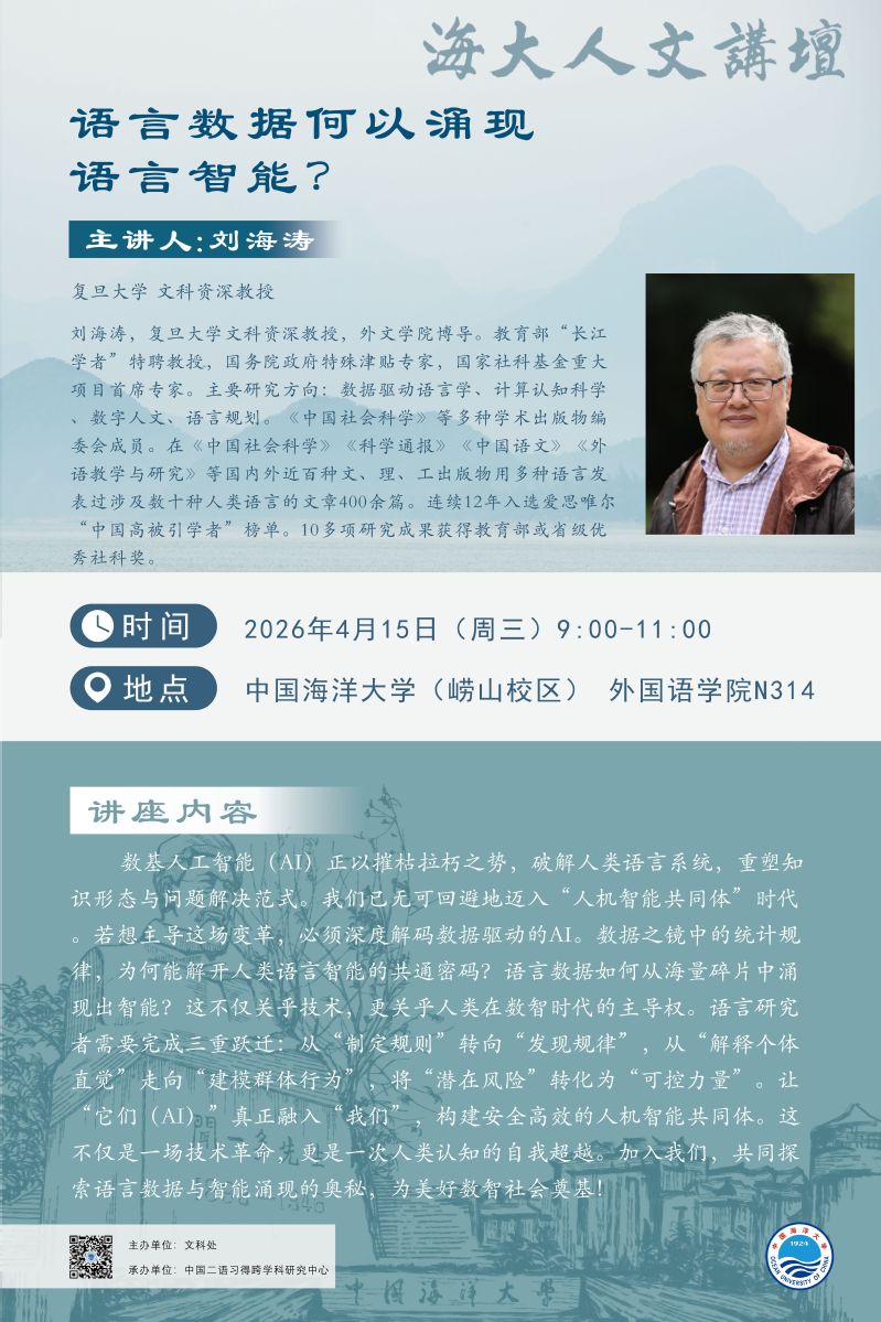海大人文讲坛2026年第6讲—刘海涛 | 语言数据何以涌现 语言智能?