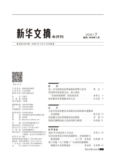 《新华文摘》是由国家新闻出版署主管、人民出版社主办的大型理论性、综合性、资料性文摘类顶级权威期刊,是我国最具影响力的哲学、社会科学权威文摘类杂志之一。本次李晟教授的文章被《新华文摘》全文转载,不仅是对其个人学术成果的高度认可,也充分彰显出中国海洋大学在法学研究领域的前沿探索能力、扎实学术积累与日益扩大的学科影响力。这一成绩反映了学校在推动法学理论创新与服务国家战略需求方面的积极作为,进一步巩固了其在相关学术领域的领先地位与学术声誉。