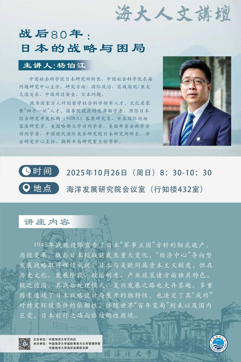 海大人文讲坛2025年第76讲—杨伯江丨战后80年:日本的战略与困局
