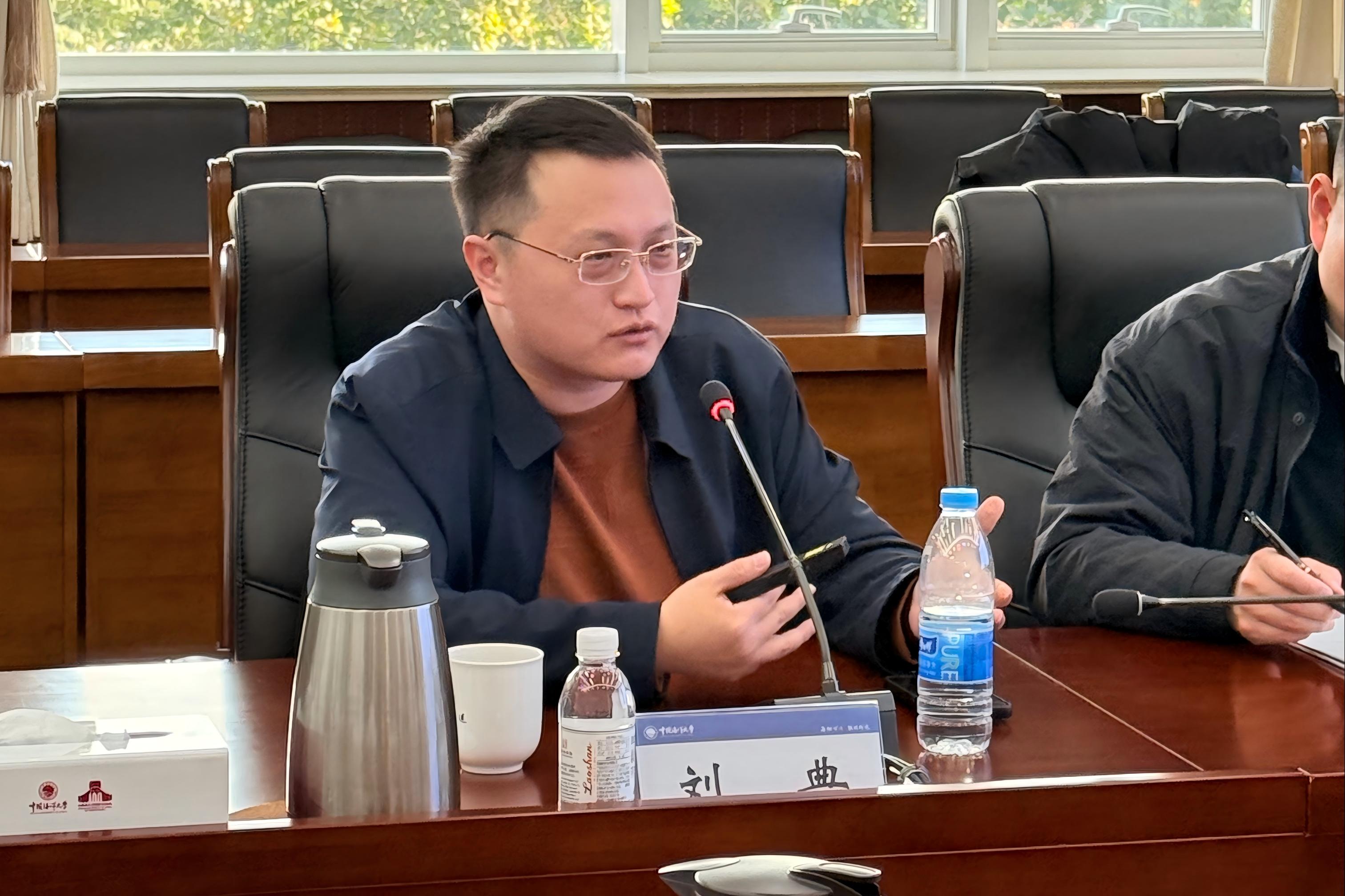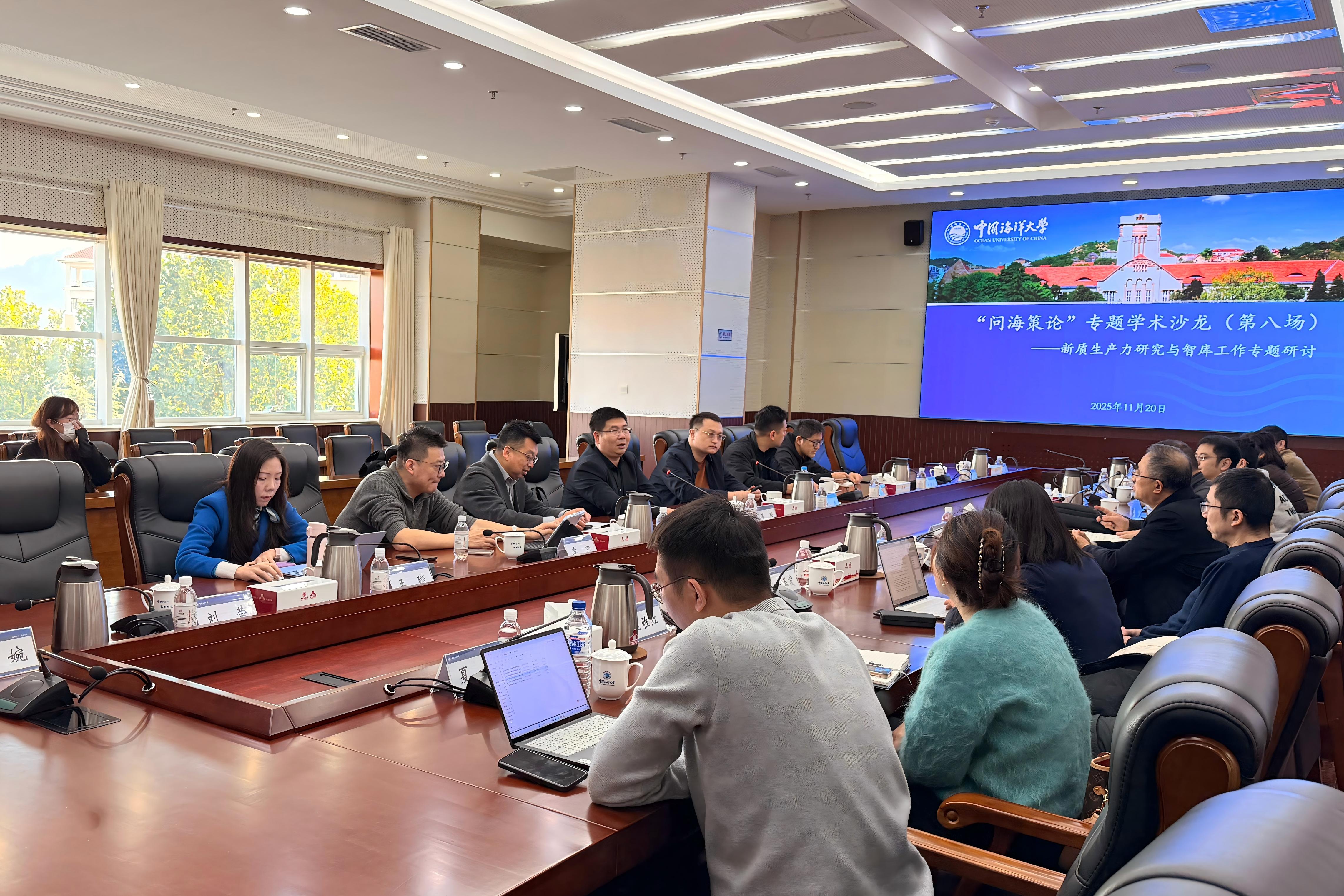 2025年11月20日上午,由文科处主办的“问海策论”专题学术沙龙第八场——新质生产力研究与智库工作专题研讨会在中国海洋大学崂山校区海洋科技楼第二会议室顺利举行。本次沙龙特邀复旦大学中国研究院副研究员、清华大学人工智能国际治理研究院战略与宏观研究项目主任、《技术经济与管理研究》总编辑刘典作专题报告。文科处处长董跃主持会议。