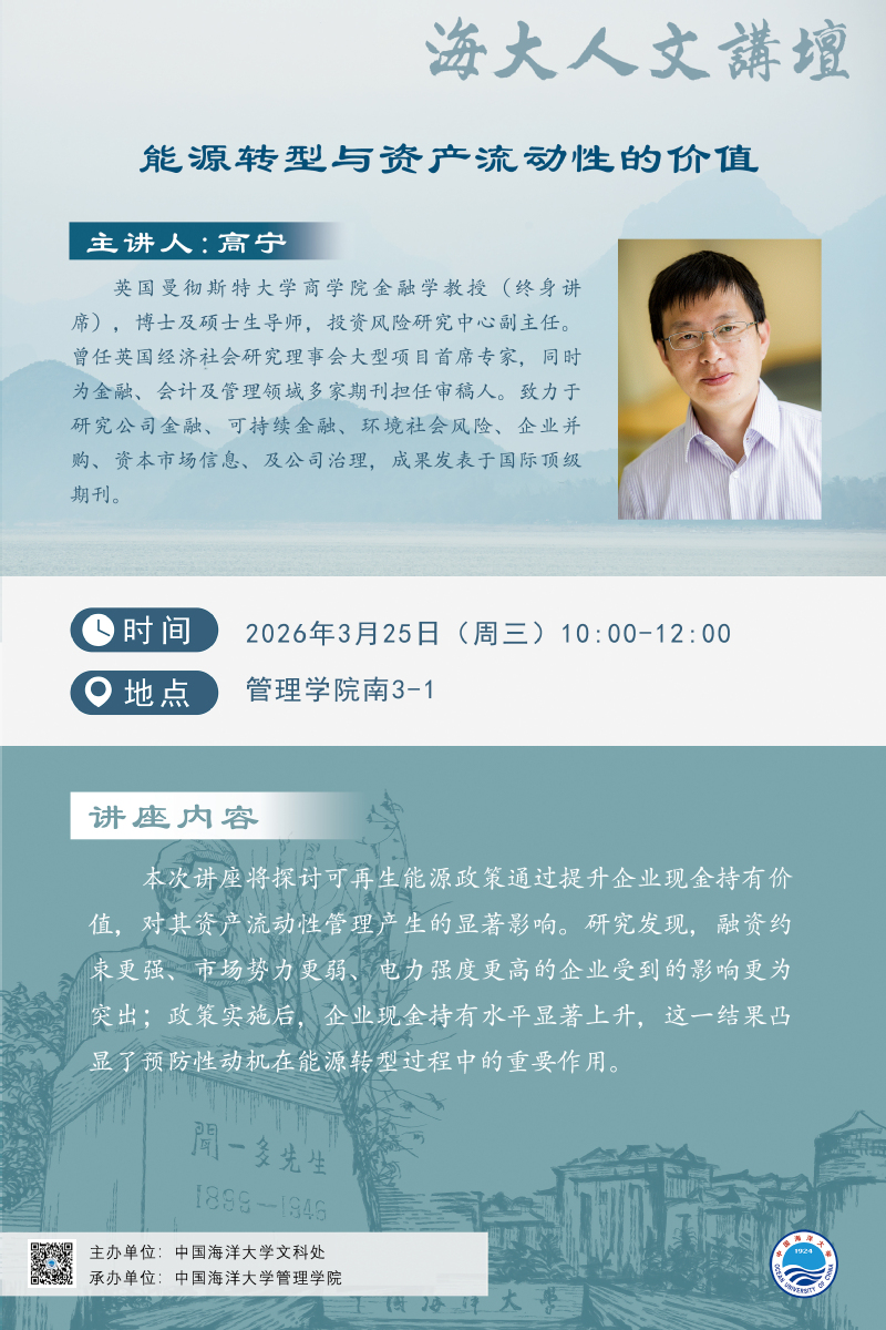 海大人文讲坛2026年第4讲—高宁 | 能源转型与资产流动性的价值